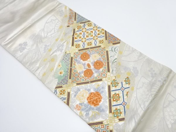 > ys7162628; 宗sou 斜め格子に花・古典柄織り出し袋帯(材料)【アンティーク】【着】