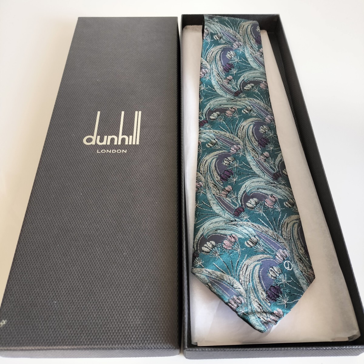 - ダンヒル(Dunhill)緑つぼみ葉っぱDロゴネクタイ