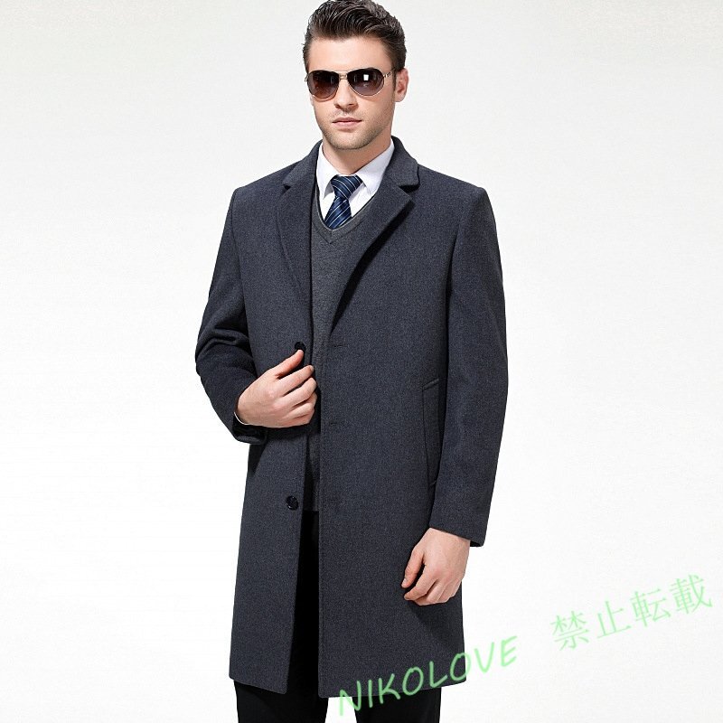- 新品 メンズ コート 高級 ウール テーラードコート カシミヤ ロングコート ジャケット柔らか ラシャー 紳士 ビジネスコート グレー LG181