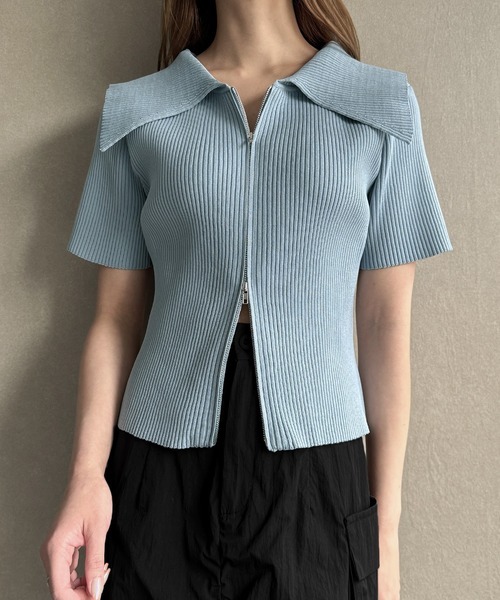 - 新品・未使用♪JUNOAH≪ジュノア≫♪ニット ダブルジップリブニット レディース♪Mサイズ♪ 6710円♪♪