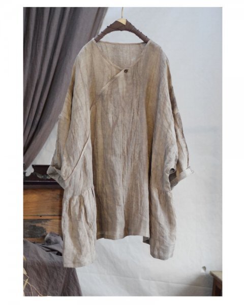- hmp 2430 秋 皺加工 グレー チュニック 麻100% ゆったり アンティーク風