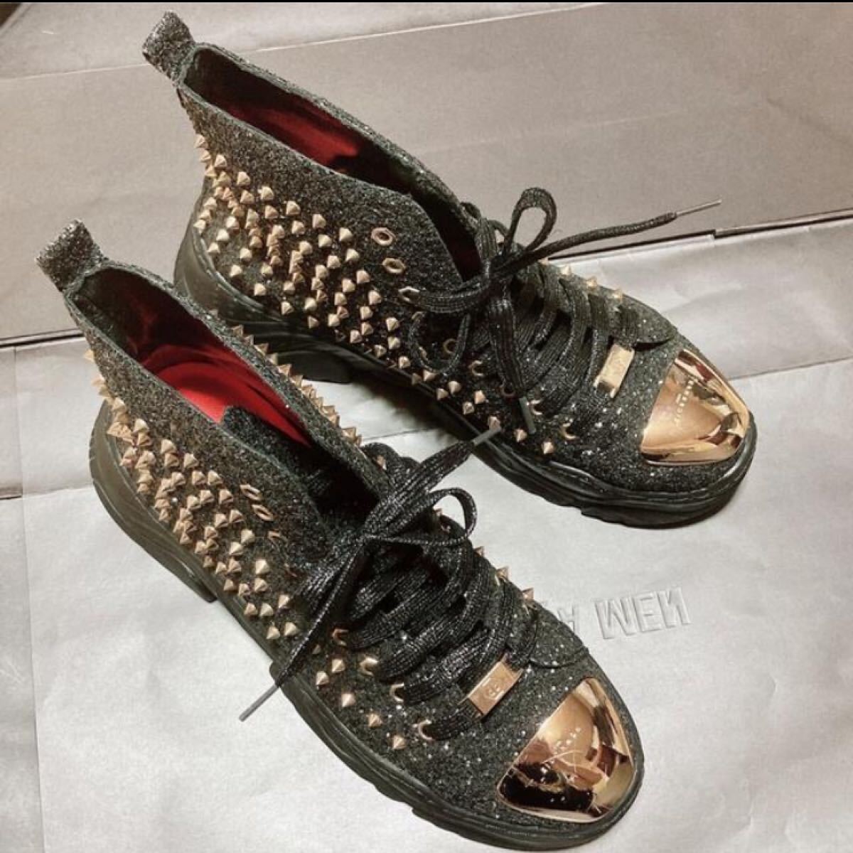 > フィリッププレイン スタッズ&グリッタースニーカー サイズUK8 27cm PHILIPP PLEIN スパイク spike skull グリッター ラメ ゴールド GOLD