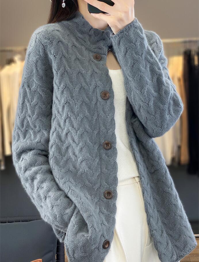 - 秋冬美品*上質 ニットカーディガン 秋冬 ケーブル編み カシミヤ混 アウター オシャレ ニットコート 気質 大人*灰