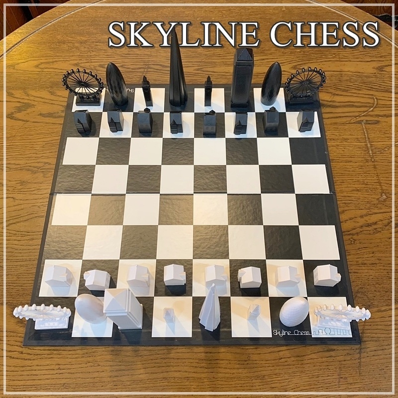 - 【福岡】スカイラインチェス The London Skyline Chess チェスセット 折りたたみ ロンドン モダン 黒白 英国製 モデルR展示品【RU0604-6】