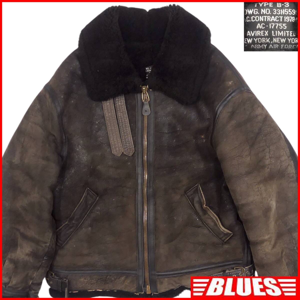 - 即決★アメリカ製 AVIREX★メンズ L位 新品定価20万円程 フライトジャケットB-3 アビレックス 黒 本革 ボマージャケット ムートン USA製