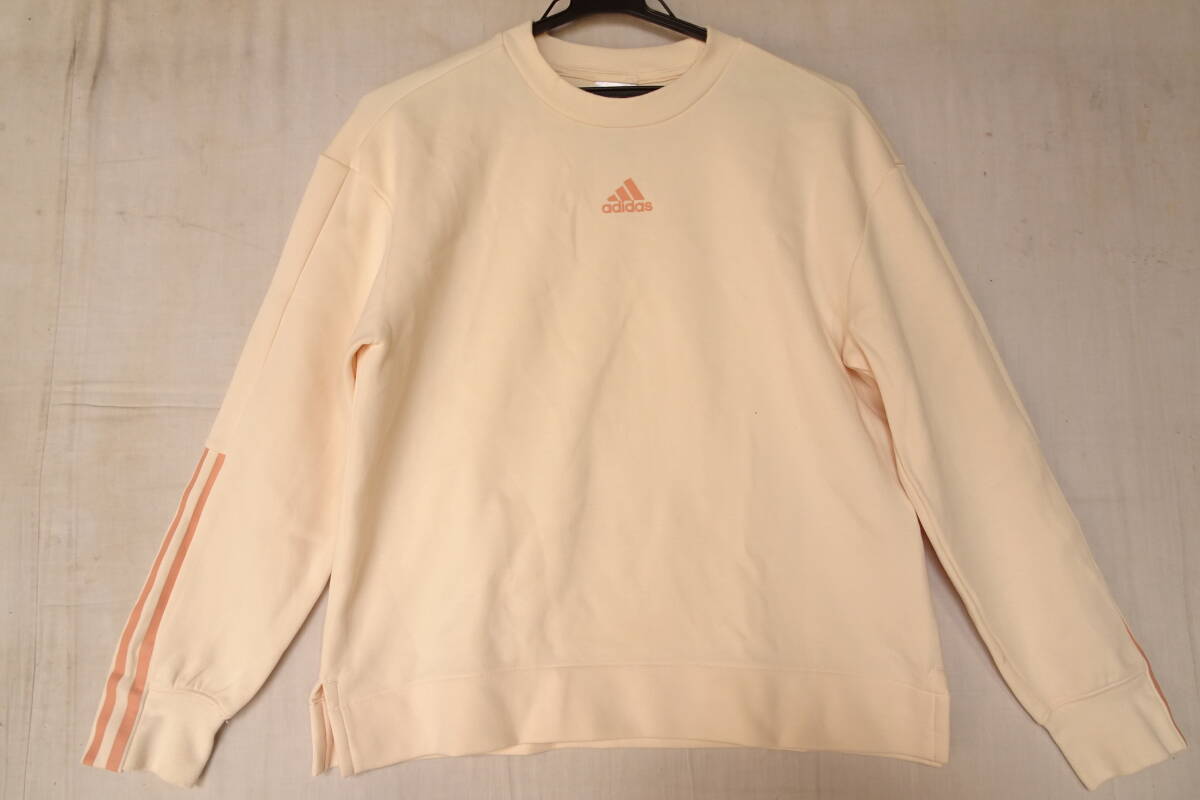 - adidas/アディダス/長袖トレーナー/プルオーバー/スウェット素材/ピンク3本ライン/裾サイドスリット/ペールオレンジ/Sサイズ(10/18R)