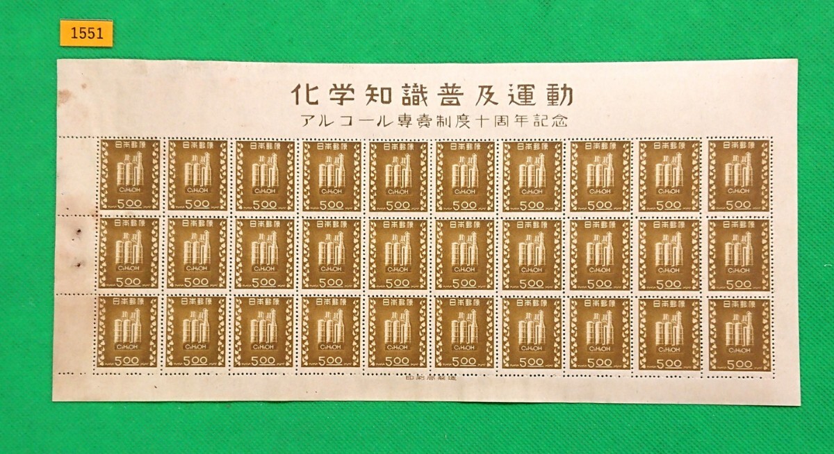 - アルコール専売10年/化学知識普及運動/5.oo円1シート/NH/汚れ有り/シワ無/裏糊枯れ気味/1948年/カタ価25,000円/№1551