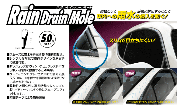 ●車内への雨水の侵入を防止するスリムなレインモール。