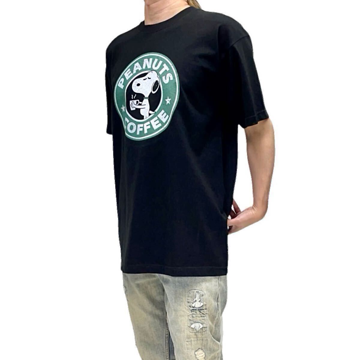 - 新品 SNOOPY スヌーピー スタバ コーヒー ピーナッツ コミック パロディ 掠れ ビンテージ風 ロゴ ビッグ Tシャツ オーバーサイズ XXL(3L)