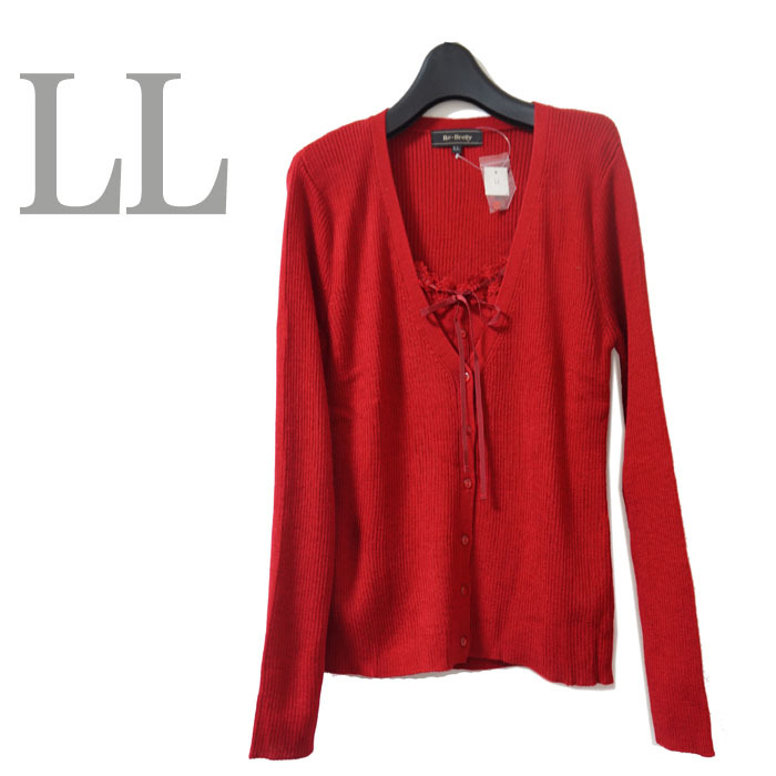 - ●新品/カーディガン/LL/ボルドー系/リボン/レディース●f6662