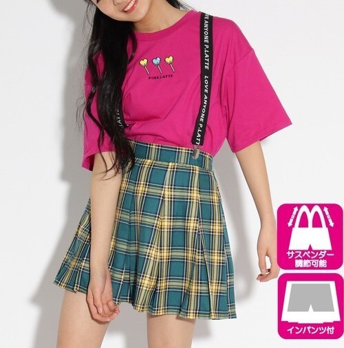- ラスト 新品 PINK-latte ニコラ掲載ゴムサス付プリーツ スカート グリーン 16(S160cm) 定価3850円