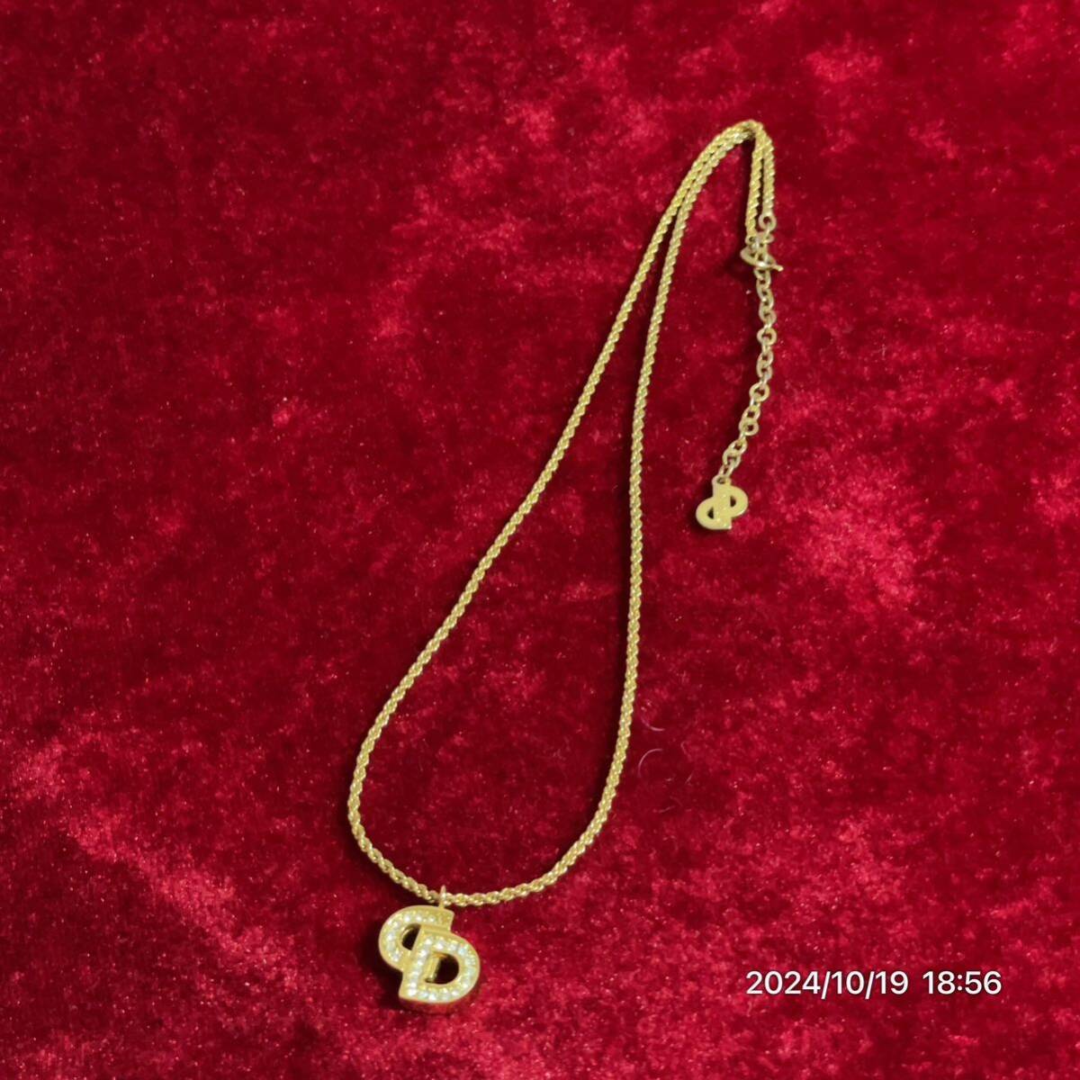 > Dior クリスチャン ディオール CDロゴ ラインストーン ゴールドカラーボディネックレス ペンダント アクセサリー