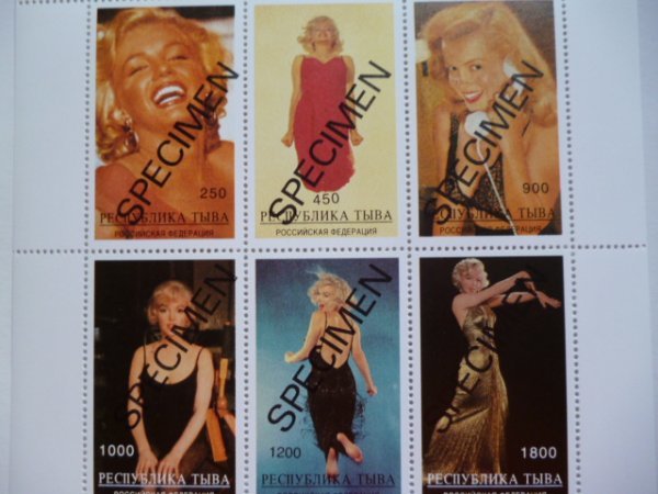 - トゥヴァ切手『マリリン・モンロー』6枚シート 見本切手