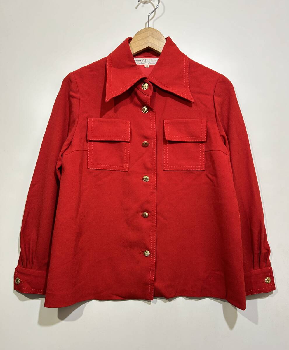 - LEILIAN TOKYO 東京ブラウス ウールジャケット 13 金ボタン 赤 レッド ダブルフラップポケット オールド 昭和レトロ 古着 レリアン