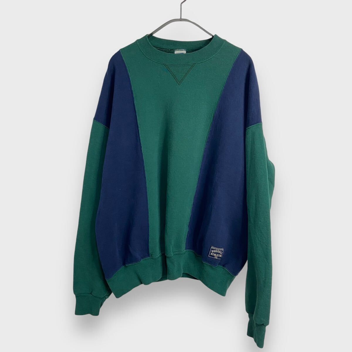 - 送料無料☆ 90s☆USA製☆ラッセルアスレティック☆前Vバイカラースウェット☆緑☆紺☆XL