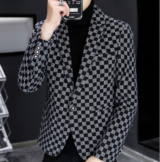 - テーラードジャケット※新入荷 ブレザー 折り襟 スリム チェック柄 メンズ カジュアルスーツ 紳士 トップス サイズ選択可 2色選ぶ/黒/2XL