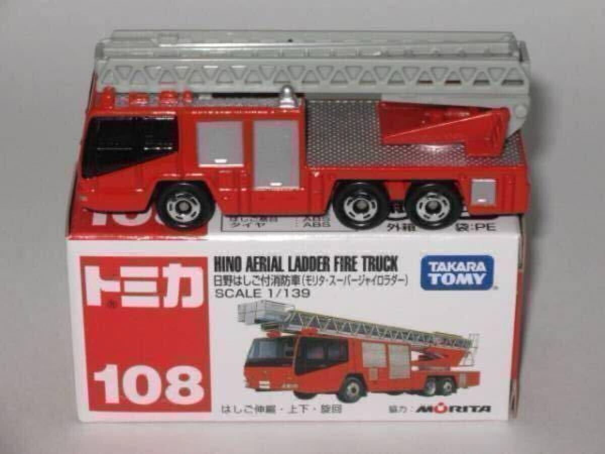 - トミカ赤箱108 日野はしご付消防車(モリタ・スーパージャイロラダー)新品