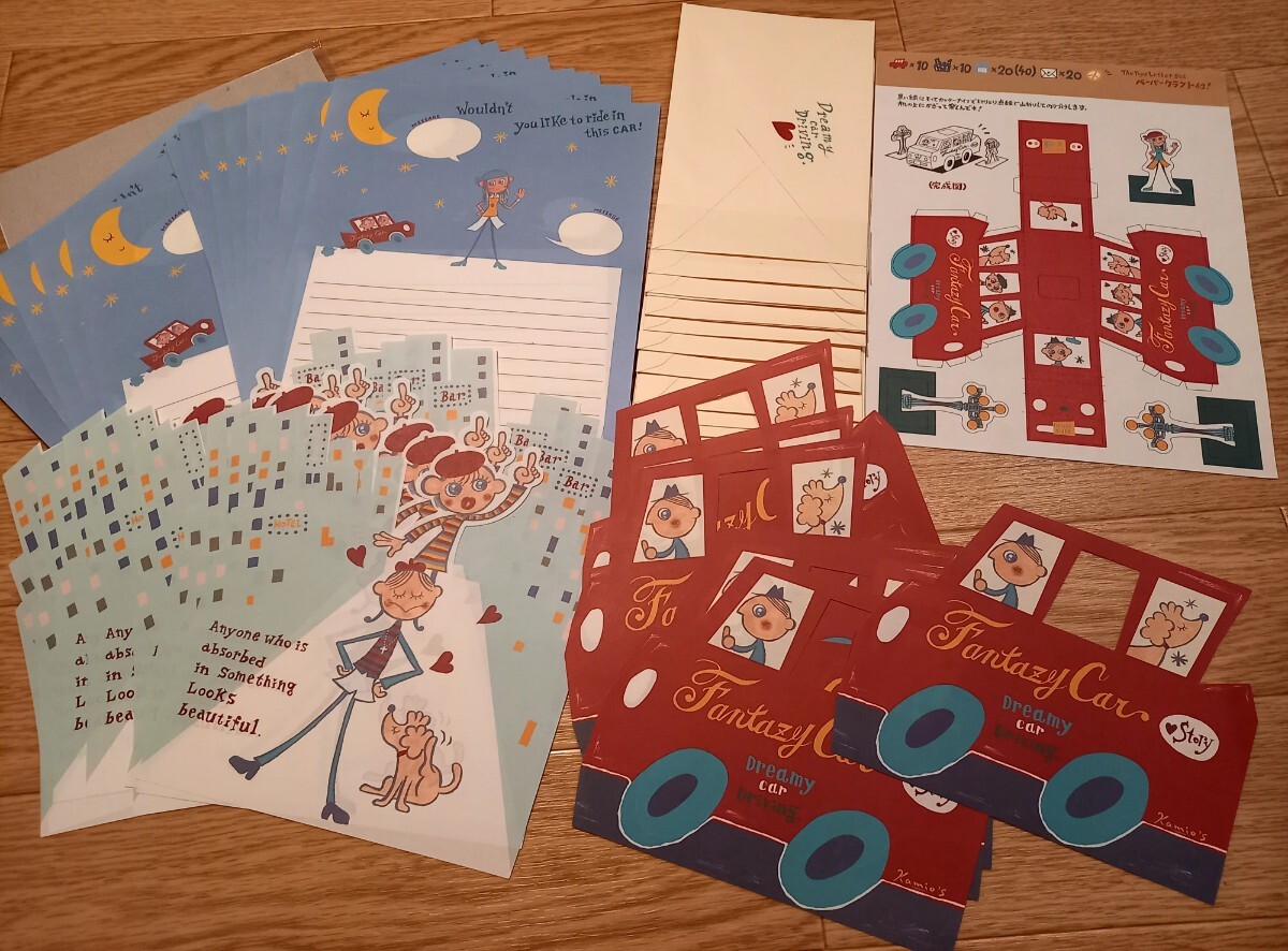 - 即決☆レア!!平成レトロ☆ ペーパークラフト付き!男の子 女の子&プードル(犬)絵柄のレターセット 便箋&封筒 車の工作☆90年代