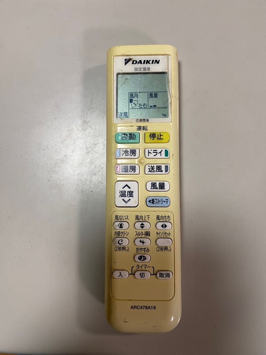 - ダイキン ARC478A19 エアコンリモコン【動作品】