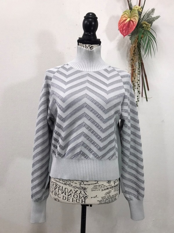 - 3081 【 A+TOKYO エープラストキョー 日本製 】ハイネック ラグラン袖セーター サイズ:F 色:グレー柄入り