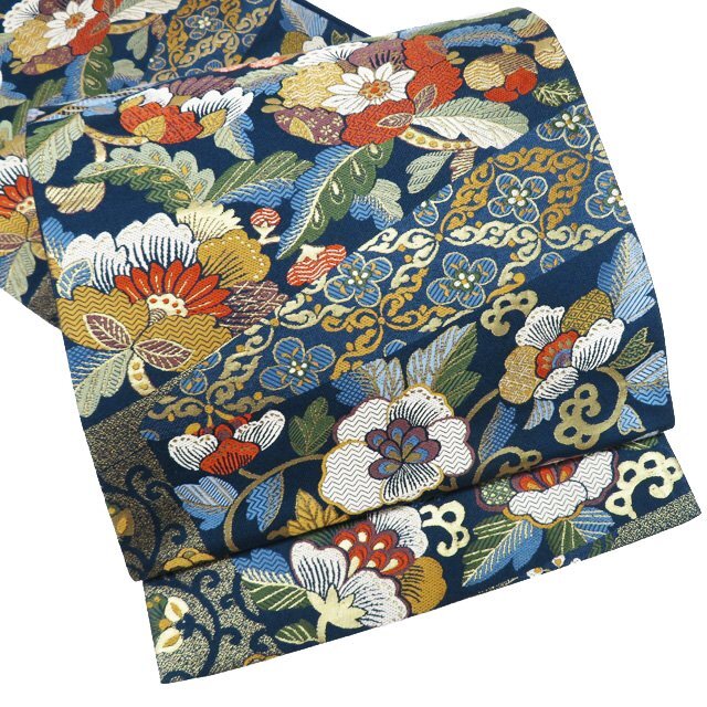 - 袋帯 中古 リサイクル 正絹 フォーマル 仕立て上がり 六通 花模様 箔糸 褐返色 多色 金 きもの北條 A1104-16