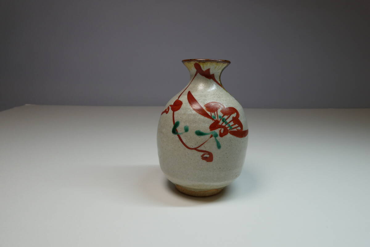 - 人間国宝 藤本能道 赤絵徳利 共箱 美品 一輪挿し 酒器