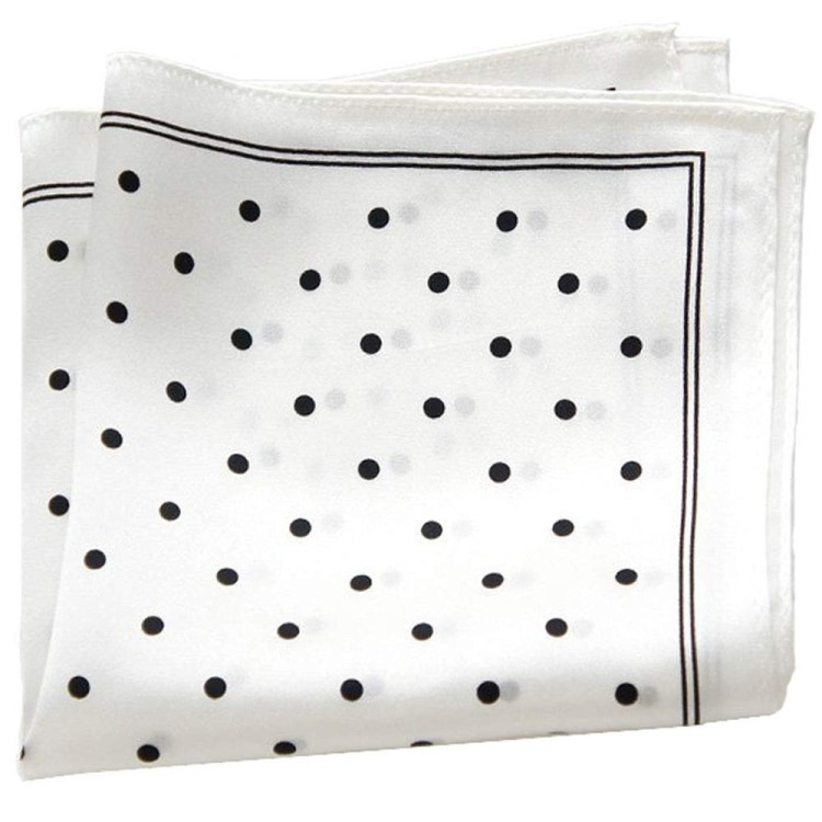 - ◆ポケットチーフ メンズ 結婚式◆日本製◇白×黒/ドット プリント 枠付きポケットチーフ シルク100% メール便可 acc-DT04