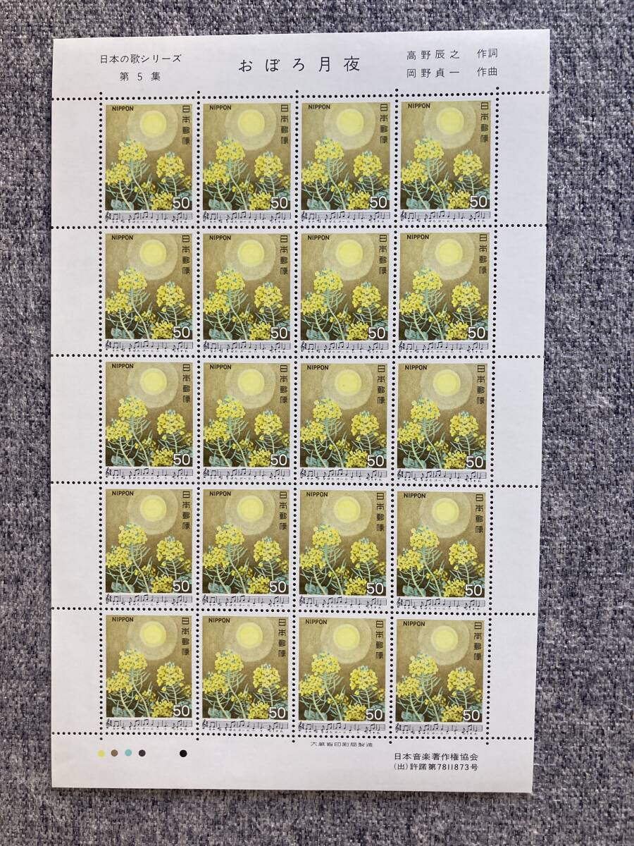 - ★未使用 日本の歌シリーズ 第5集 おぼろ月夜 作詞 高野辰之 作曲 岡野貞一 日本音楽著作権協会 1980年 昭和55年 切手シート 50円 20枚