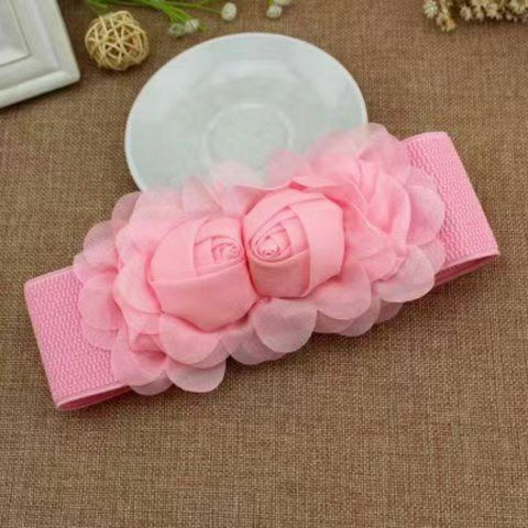 - 【ピンク色】レディースゴムベルト フラワー 花 カラー おしゃれ