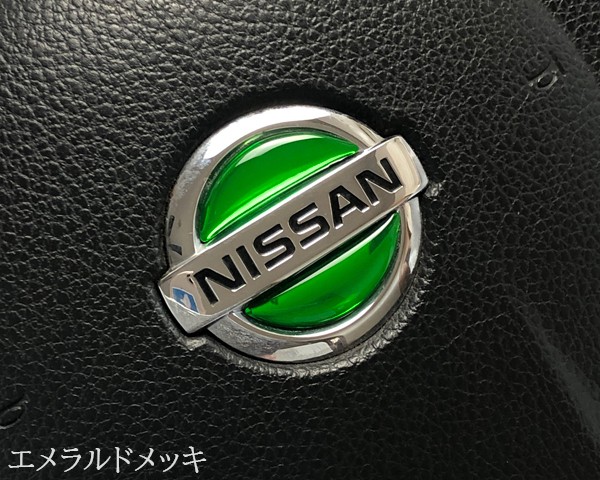 - 日産 ステアリング エンブレムシート エメラルドメッキ ハンドル用 SDH-N01 樹脂盛立体3D加工 NISSAN ZEROWIN