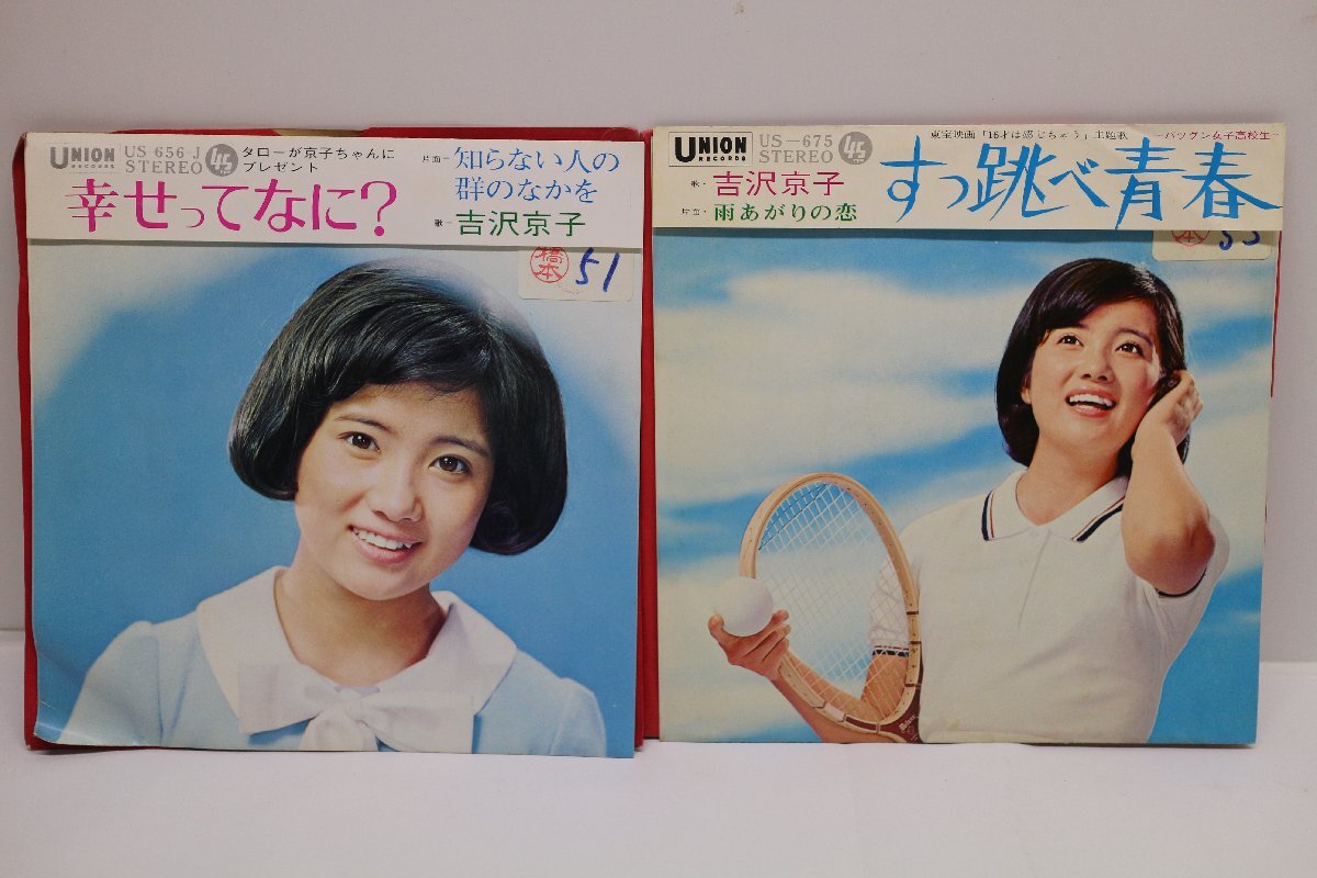 - [TK1970EP] EP 吉沢京子まとめ二枚セット 幸せってなに?/すっ跳べ青春 インサート掛帯 歌詞楽譜 ジャケ並み上 少々ノイズ有り 激レア!