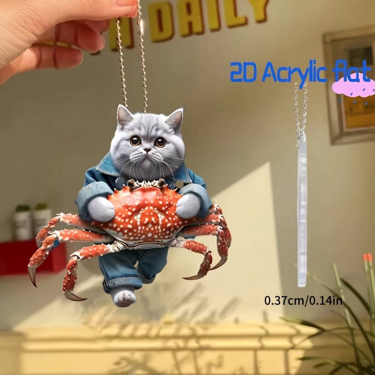 - キーホルダー おもしろ 漁師 グレー 猫 平面 2D アクリル 8cm 大きめ 二足歩行 カニ ネコ おしゃれ バックミラー かわいい ねこ t3326