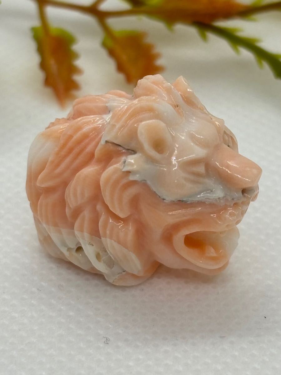 - 天然ボケ珊瑚 ライオン彫り 無染色 11.03g (m431) アクセサリー 彫刻