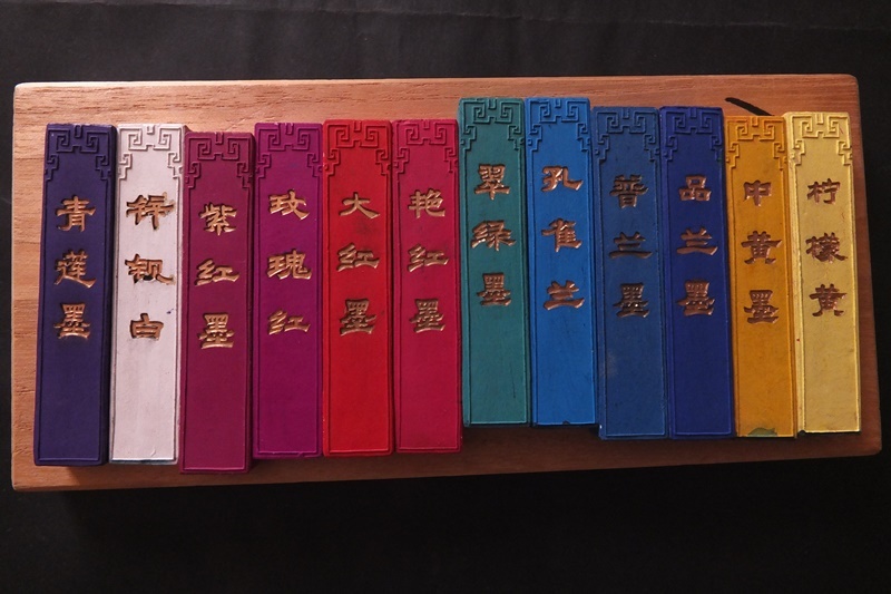 - # 古墨 唐墨 屯渓胡開文墨廠製 彩色墨 中国高級書画墨 12色セット210g 書画/書道用 #