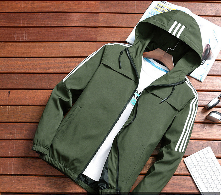 > ジップパーカー マウンテンパーカー メンズ ウインドブレーカー 男女兼用 ジャケット フード付き 袖ライン 防風 春 /グリーン; XL DJ175
