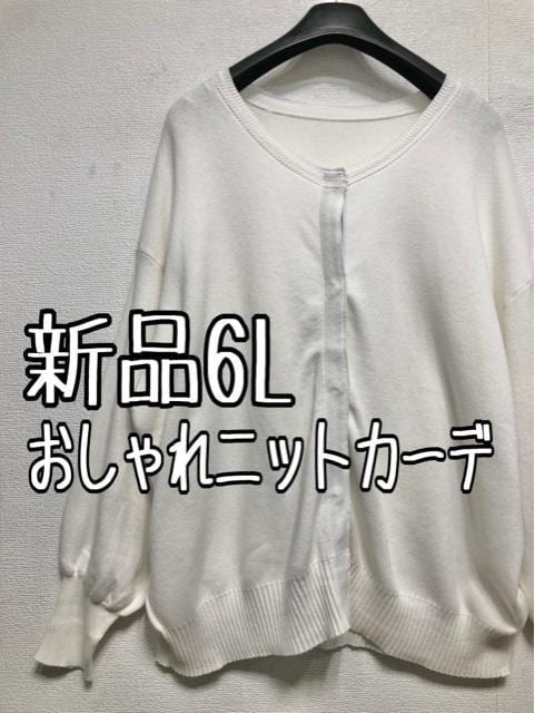 - 新品☆6L白系♪コットン100%ニットカーディガン♪☆z835