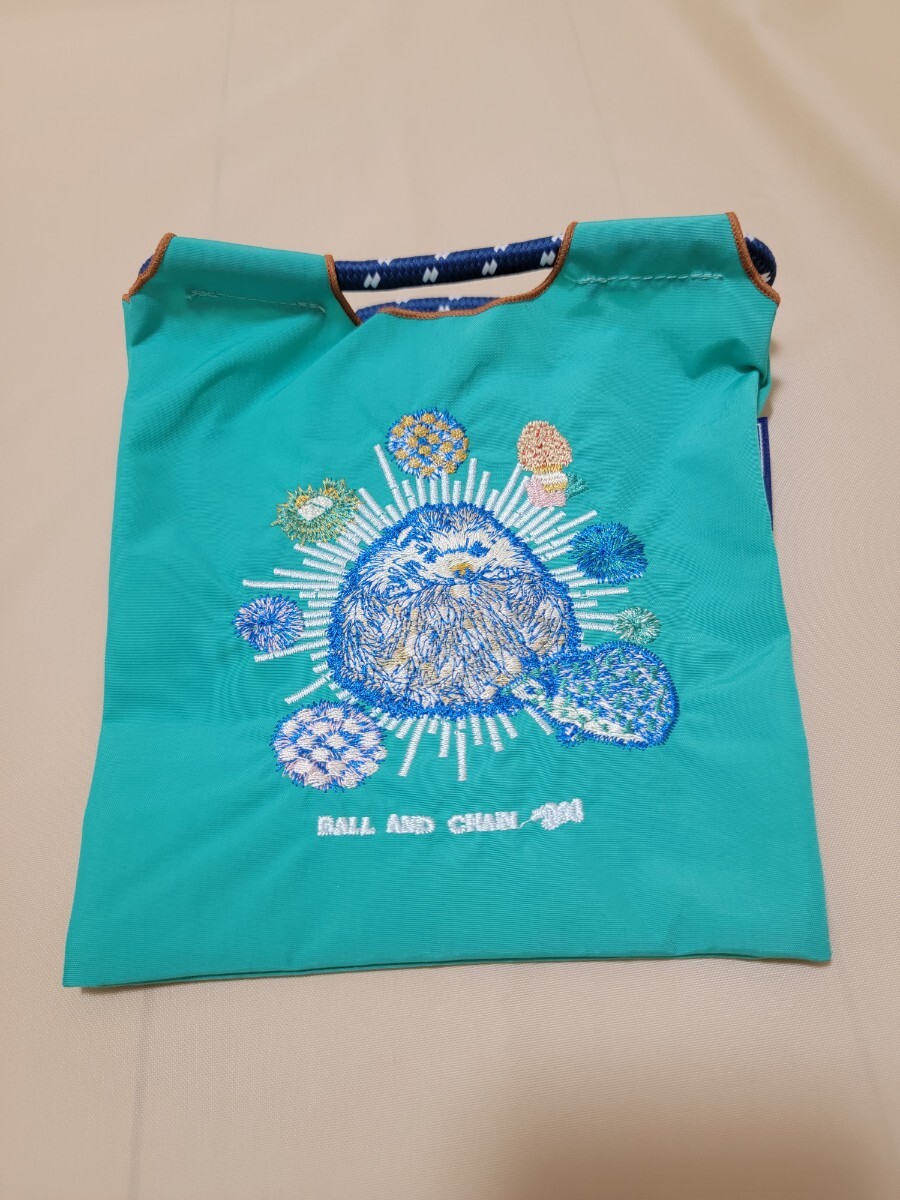 - 刺繍ロープエコバッグ(グリーンハリネズミS)ショルダーベルト付き