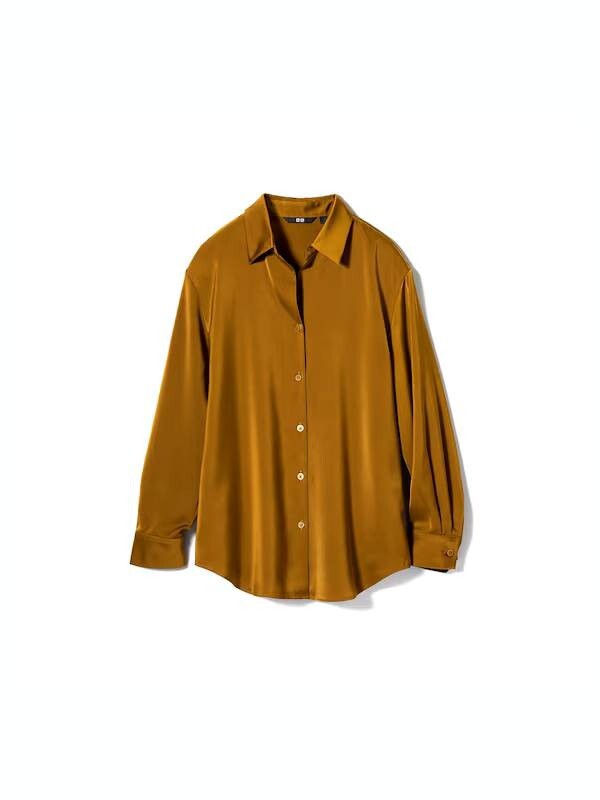 - ユニクロ WOMEN サテンブラウス ブラウン Lサイズ