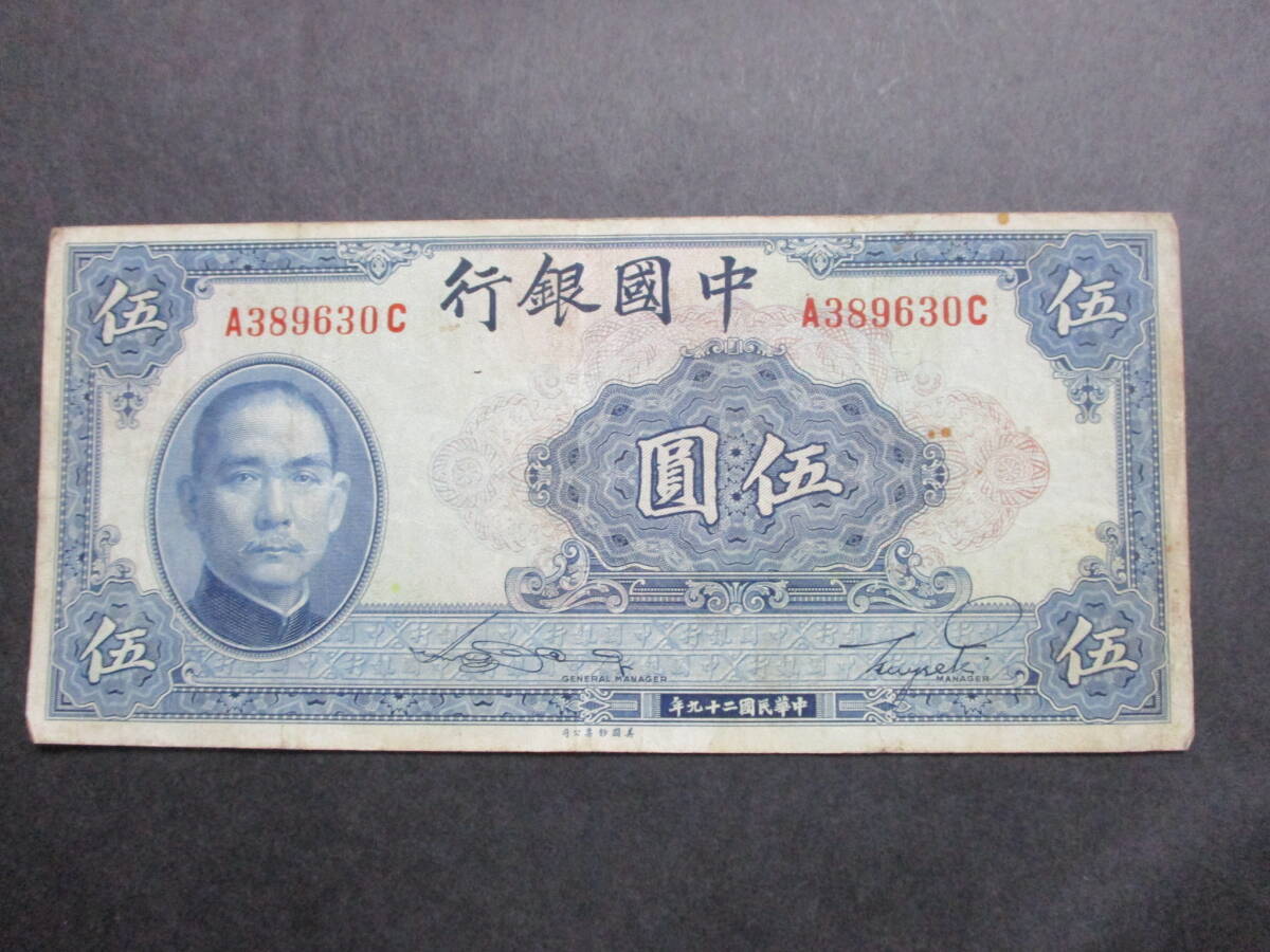 - ★中国紙幣 中国銀行 伍圓 中華民国29年印 1枚★