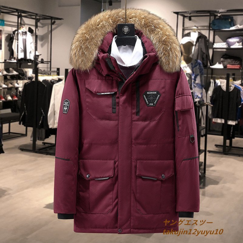 - 秋冬新作■高級品 ダウンジャケット メンズ 厚手 ダウンコート ジャンパー ブルゾン 紳士 フード外し可 ダウン90% 男女兼用 レッド系 3XL