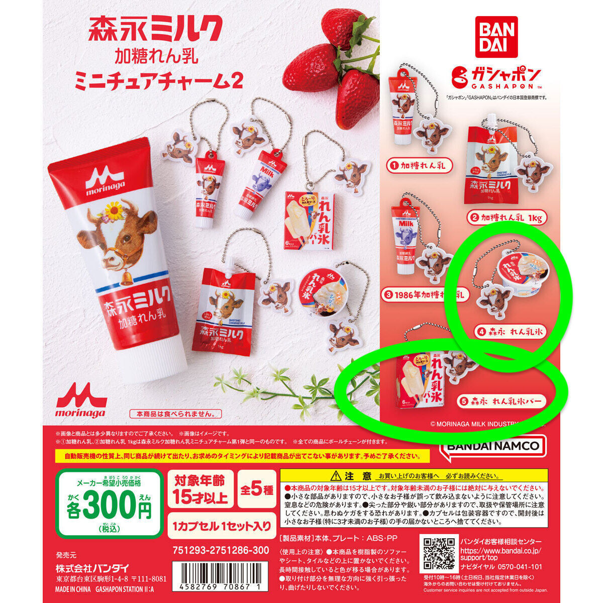 - 即決 新品未開封 ガチャガチャ 森永ミルク 加糖れん乳 ミニチュアチャーム2 【れん乳氷バー れん乳氷】2個セット カプセル付 ミニチュア