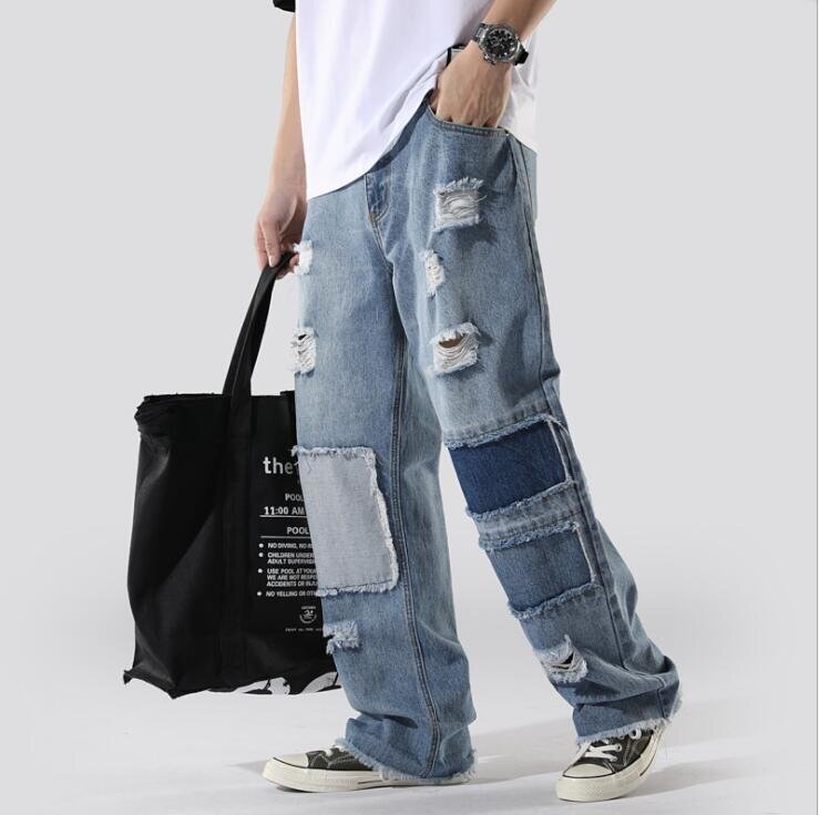 - 秋新作 カジュアル デニムパンツ メンズ ワイドパンツ パッチワーク ハーレムパンツ ゆったり ジーンズ ボトムス Gパン M~3XL ZCL507