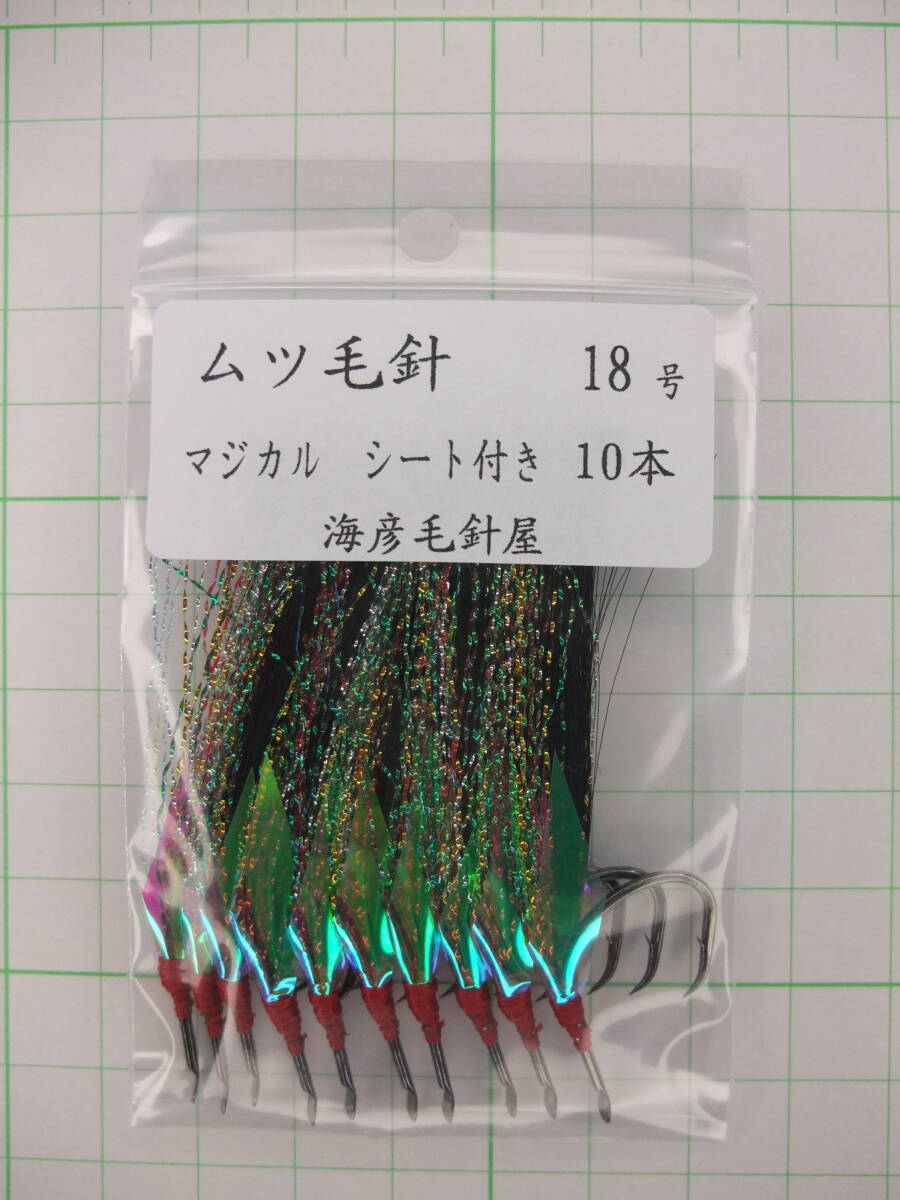 - 18KM ムツ18号毛針 黒フラッシャー マジカルシート付き 10本セット
