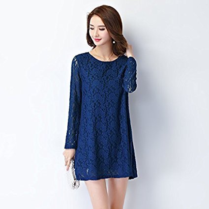 - 新品 長袖 Aラインレースワンピース 紺 ネービー 大きいサイズ きれいめ フォーマル 秋冬 ミニ丈 レディース アンフィニ 春夏 DJ541