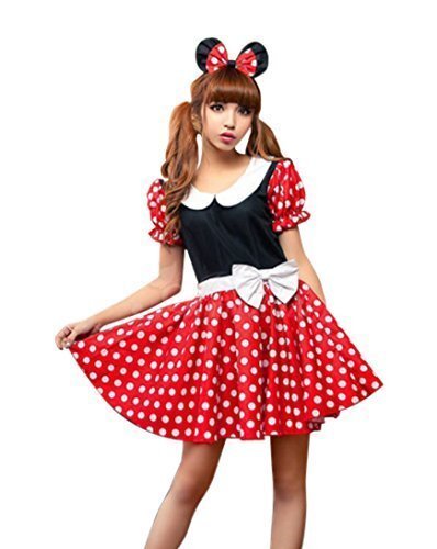 - ミニーちゃん ドッド柄ワンピース レディース ディズニー 衣装 フリーサイズ コスプレ DJ725