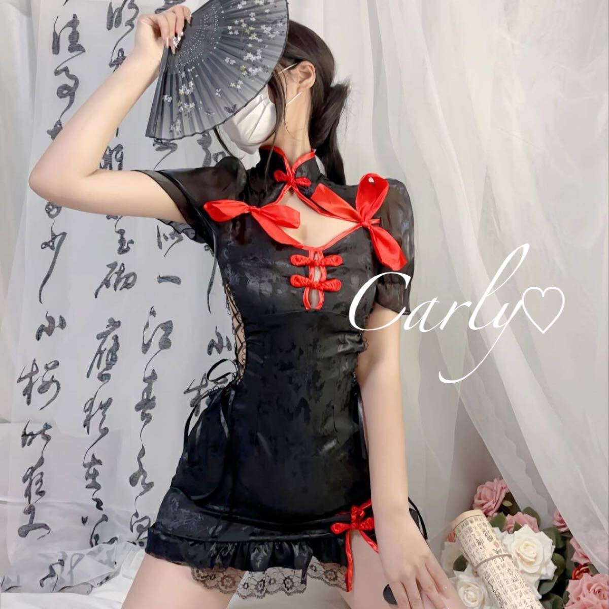 - コスプレ セクシー コスチューム かわいい チャイナドレス 黒 ブラック リボン