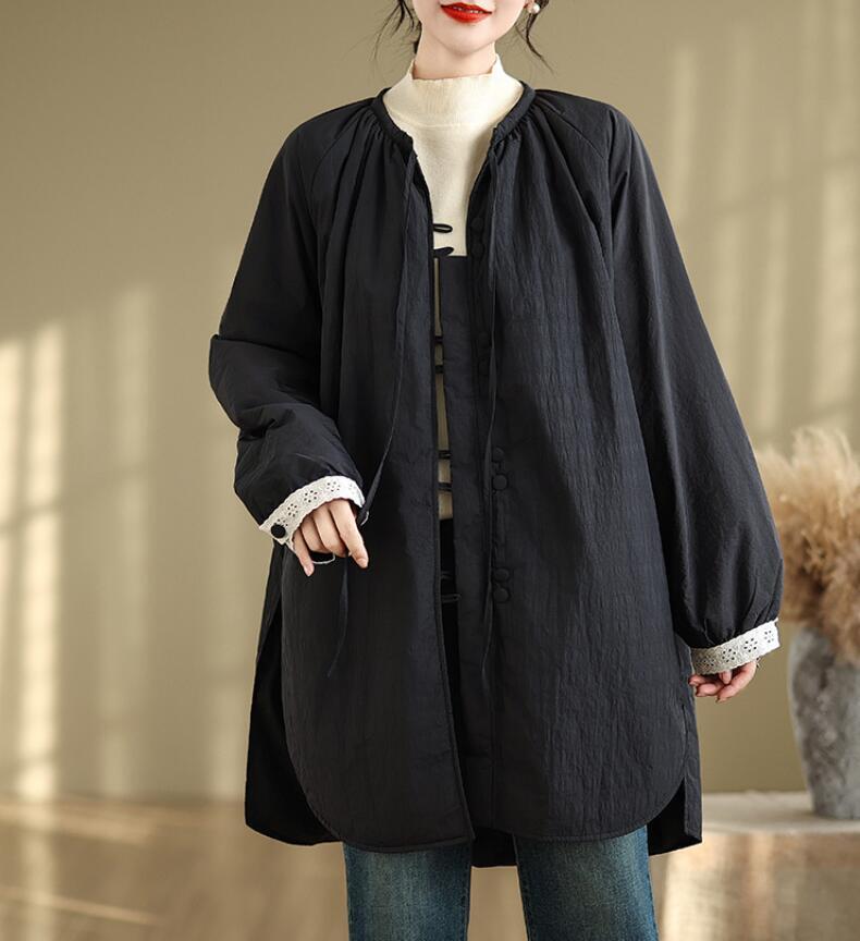 - 秋冬美品* カジュアル ロングコート ジャケット コート 中綿入り 防寒 レディース 中綿コート 大きいサイズ オシャレ アウター*ブラック