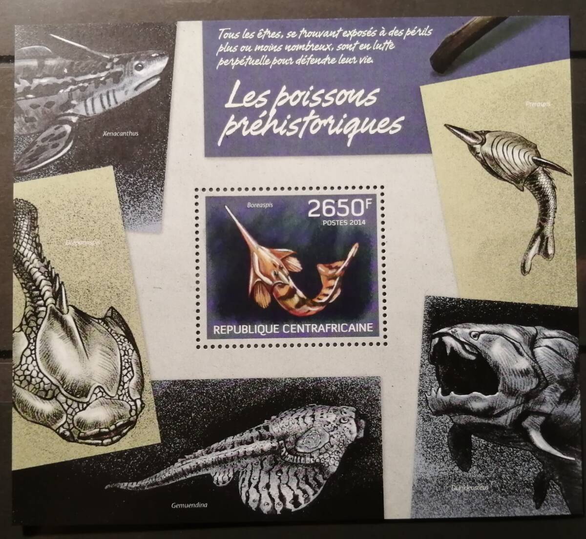 - 中央アフリカ 古代魚(1種小型シート) MNH