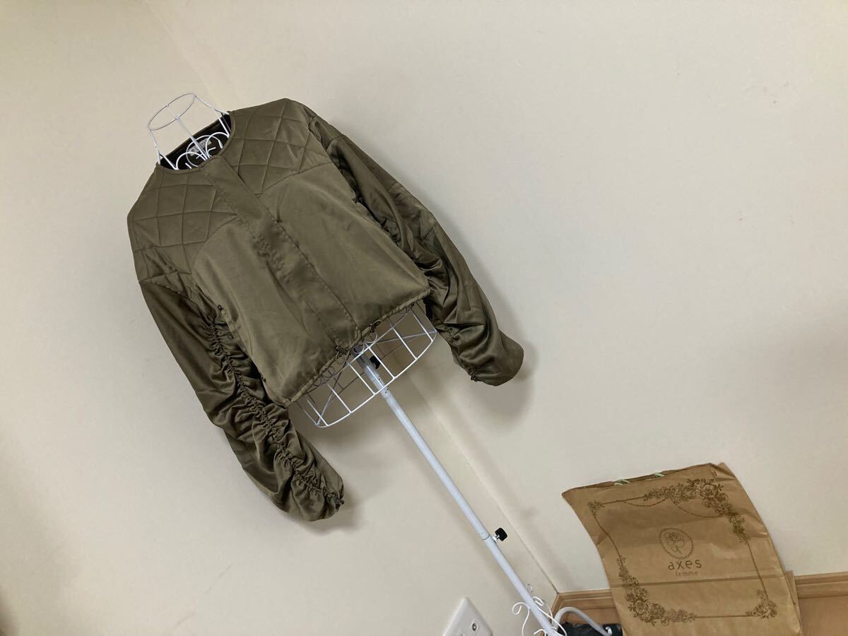 - アクシーズファム☆キルティンショートブルゾン、ギャザー袖上着、ノーカラージャケット☆紙タグ付き新品