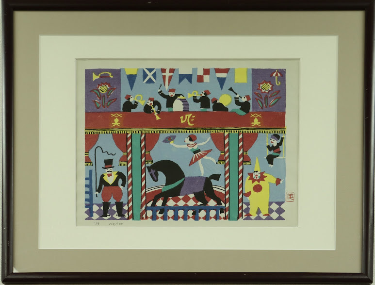 - 【真作保証】川西英『曲芸馬』 木版画 ED110/150 1979年 サーカス 神戸 馬 R6-0036